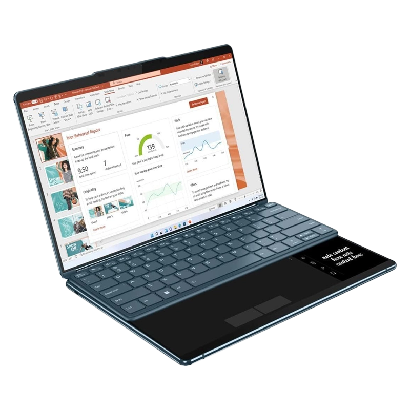 با Yoga Book 9i آماده شوید تا تولید محتوای خود را ارتقا دهید! با صفحه نمایش دوگانه OLED با اندازه کامل، اکنون می توانید چندین برنامه را همزمان و در جهت های مختلف اجرا کنید. خلاقیت خود را با فضای کاری گسترده برای نرم افزار مورد علاقه خود آزاد کنید. به طور مستقیم بین برنامهها و پروژهها جابهجا شوید و آنچه را که در پلتفرمهای اجتماعی به اشتراک بگذارید.